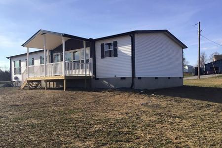 Brand New 3 bedroom and 2 bath Double Wide with Permanent Foundation!!! Home sits on 0.345 +/- acres in Bulls Gap, TN. Lot lays level and is cleared. Home has 1,820+/- sq. ft. with 3 bedrooms and 2 full baths with single level living area & Open Floor Plan. The home has many upgrades including recessed lighting throughout, has a large living area, dining area, the kitchen has a kitchen island with a Kitchen island chandelier, and brand new Samsung appliances (Refrigerator, Stove with hood, microwave and a dishwasher). The home has a laundry area with shelf for storage, large utility sink with cabinets, and large walk-in closets in the bedrooms, and a large master bed & bath. Home does have a wood burning fireplace in the living room with built in shelves, master bath has both a shower and soaking tub! City and County Taxes & CRS/MAP PARCEL have not been updated and will need to verify all tax information. 1 year builders warranty and the heat pump and appliances have a manufacturer warranty.